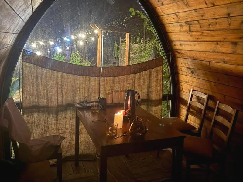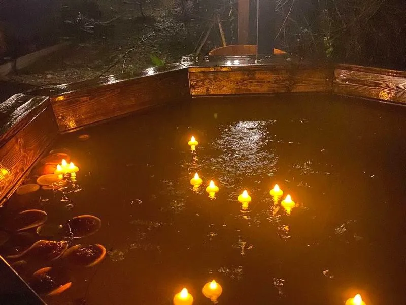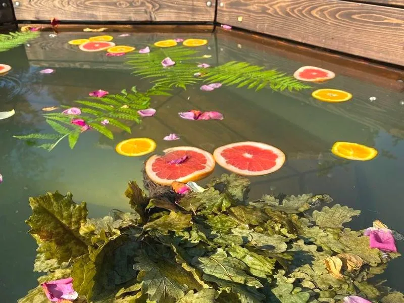 В банном чане можно расслабиться душой и телом, на свежем воздухе окунуться в ароматную воду, с полезными отварами и травами.